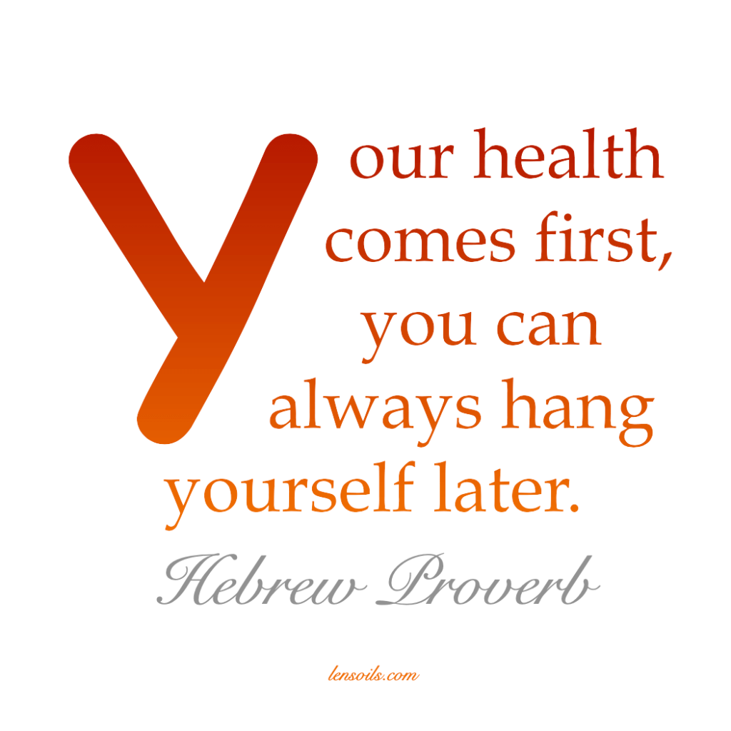 Your health comes first, you can always hang yourself later.- Hebrew Proverb