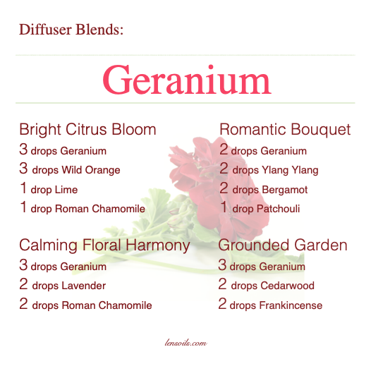 Geranium diffuser blends carry a fragrance that feels both comforting and inspiring, wrapping the room in a sweet floral scent with a hint of fresh herbs. This oil is known for balancing emotions, easing tension, and lifting the spirit on a cloudy day. Blended with calming oils like lavender or chamomile, it softens stress and encourages peace. With grounding partners such as cedarwood or frankincense, geranium creates a steady, focused atmosphere.