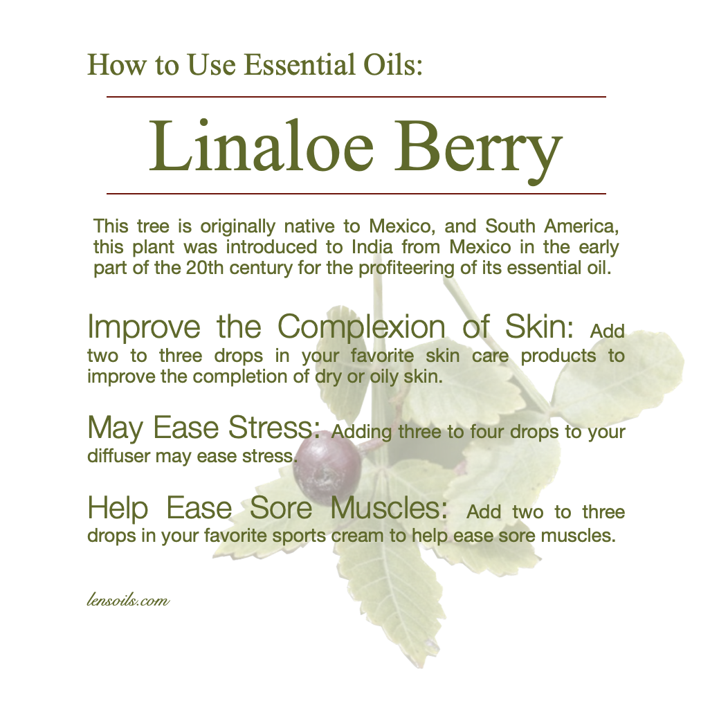 How to Use Essential Oil: Linaloe Berry January 28, 2021Better Living, Did You Know, Essential Oil InformationDid you know guy, Ease Stress, Linaloe Berry, Skin, Sore Muscles, The did you know guylfish64 Always remember to check with your practitioner before using essential oils.